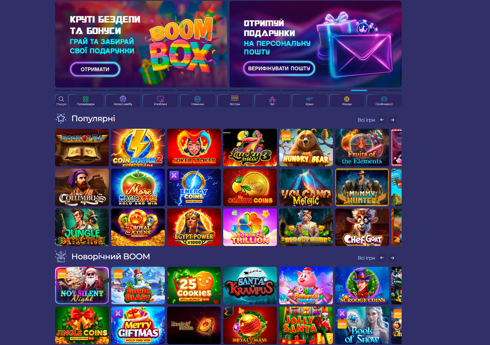 - широкий вибір ігор від популярних провайдерів